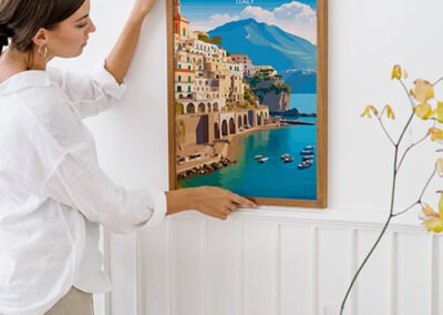 Découvrez la splendeur de la côte italienne avec notre poster artistique « Amalfi Coast« . Ce tableau captivant reproduit la beauté ensoleillée et le charme côtier d’Amalfi, un joyau de l’Italie, et apporte une touche de la dolce vita directement dans votre foyer.